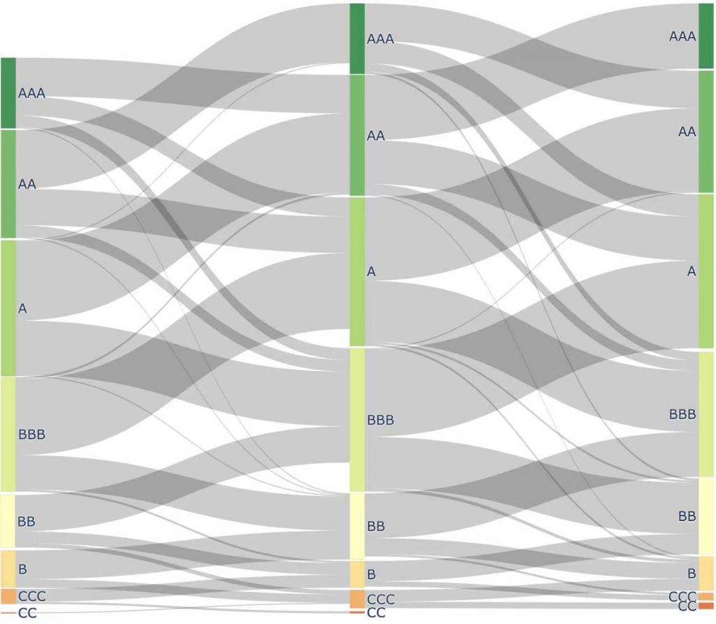 此外,CERS根据公司风险评分发布对应的ESG风险评级。该ESG风险评级具有传统信用评级的特征,可以应用在与信用评级类似的场景中。