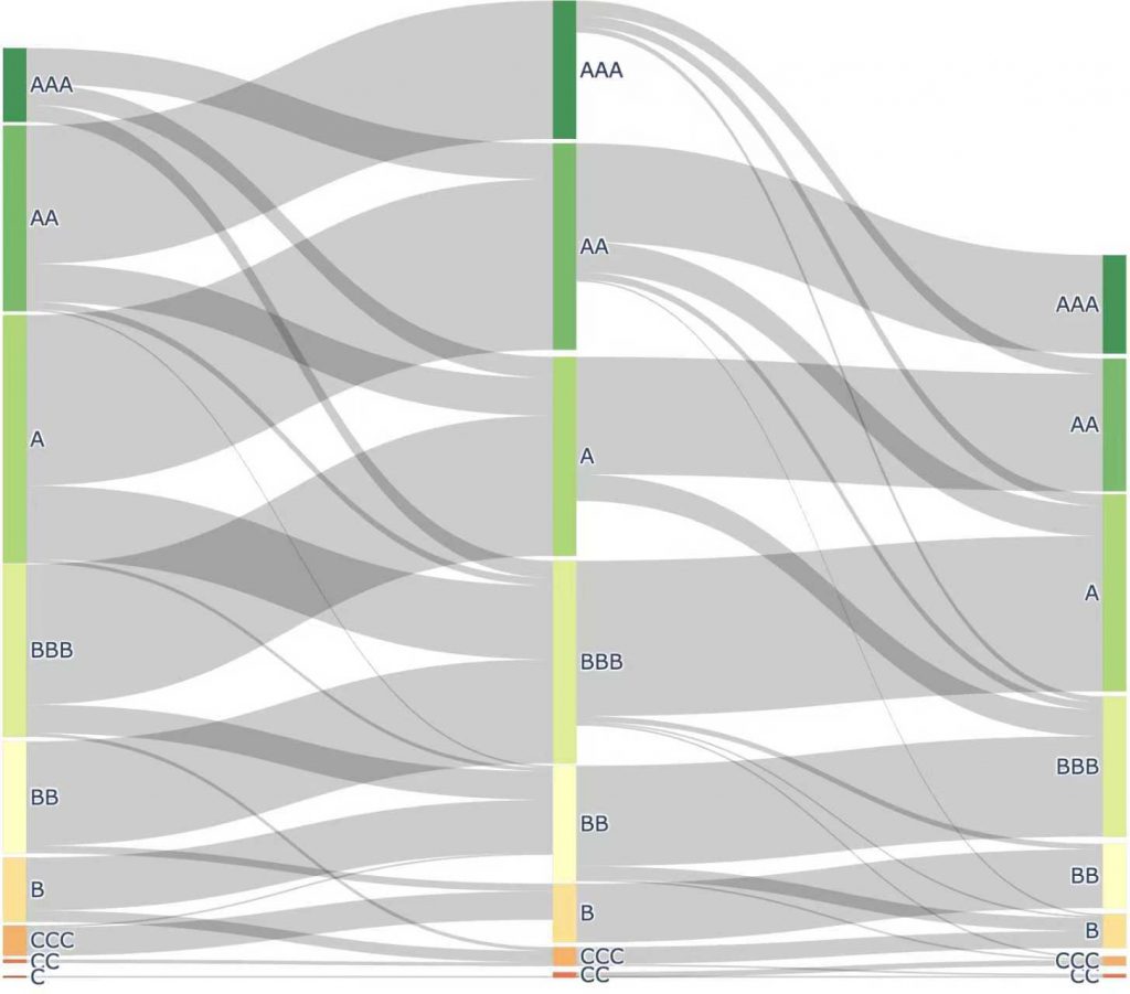此外,CERS根据公司风险评分发布对应的ESG风险评级。该ESG风险评级具有传统信用评级的特征,可以应用在与信用评级类似的场景中。