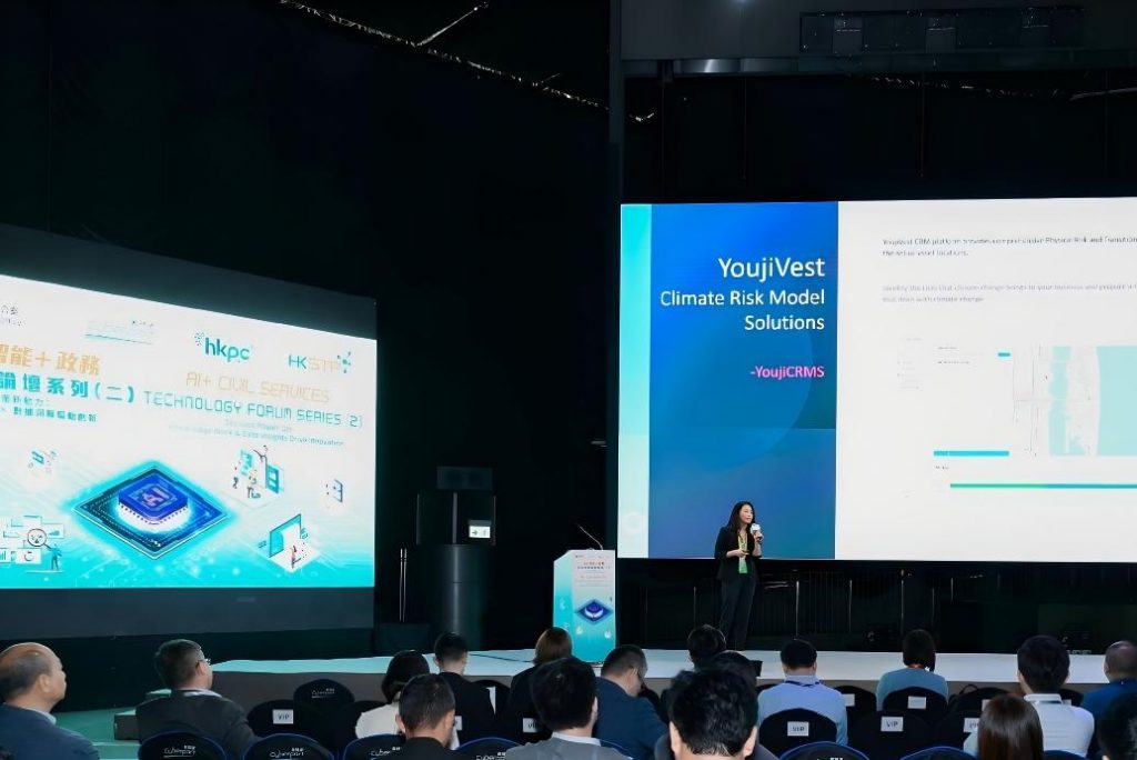 在“数据分析与预测”专题环节,有机数受邀发表主题演讲 《构建气候智能香港:技术驱动的气候风险缓释与韧性框架》重点展示了自主研发的气候风险模型YoujiCRMS的核心能力与行业实践。